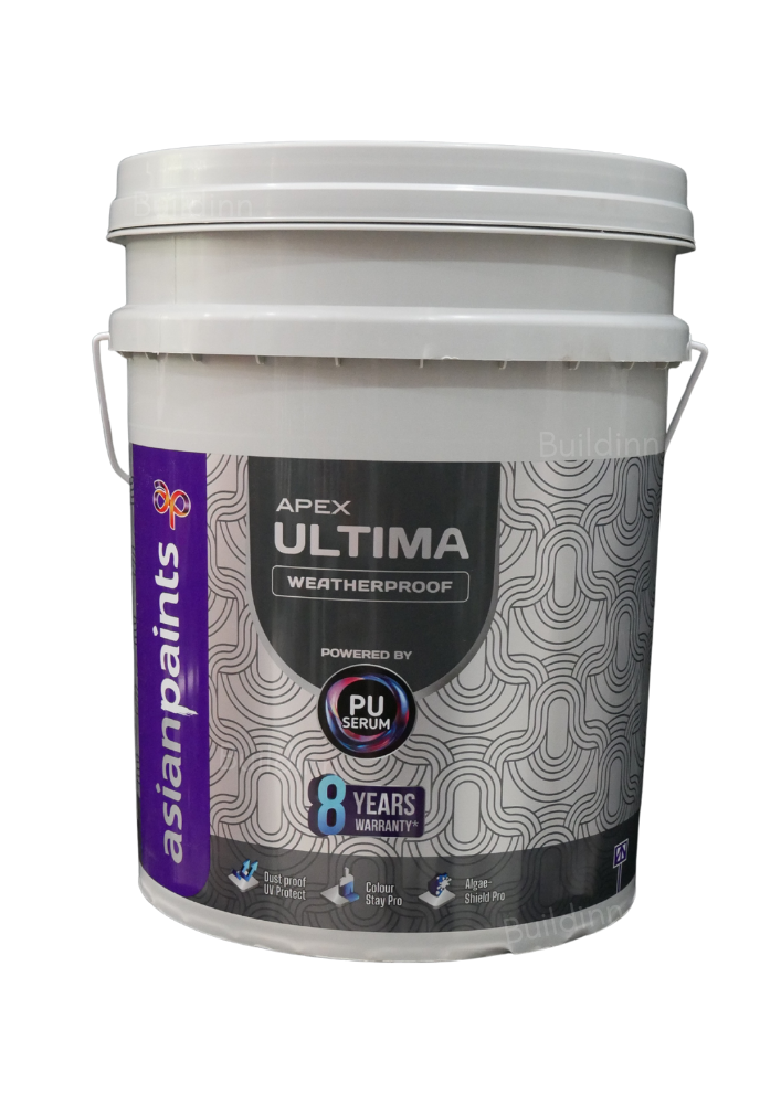 Asian Paints Apex Ultima Weatherproof Exterior Emulsion is a high-performance, water-based 100% acrylic emulsion powered by PU Serum. It provides superior protection against the growth of algae and fungus, ensuring that your walls maintain their initial beauty. Featuring Dirt Pick-Up Resistance (DPUR) technology, this exterior paint prevents dust from settling, keeping your walls cleaner for longer. Designed for ultimate performance, Apex Ultima ensures an elegant and durable finish that enhances the exterior of your home.