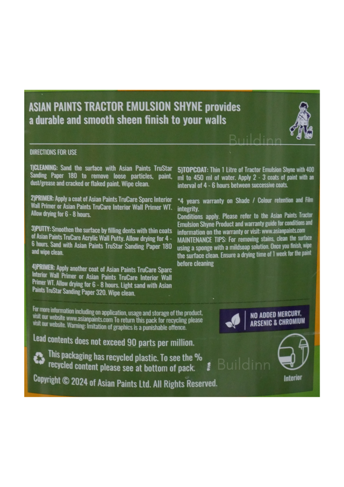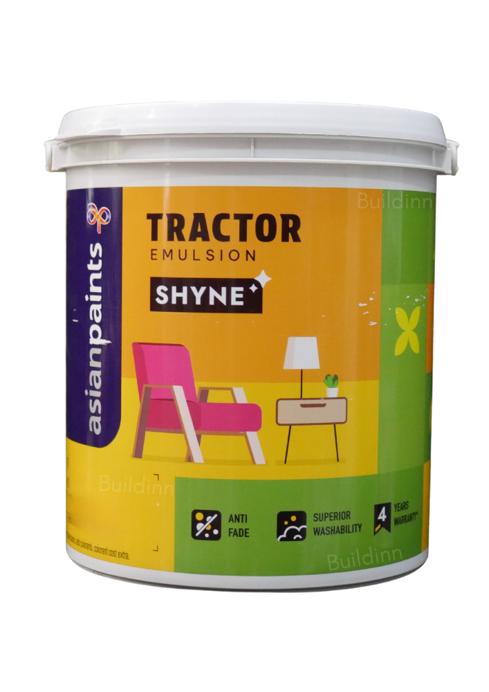Asian Paints Tractor Emulsion Shyne is the perfect choice for you if you are looking to create walls that have a touch of luxurious sheen finish, resist any fading that UV rays can cause, and have superior washability than regular distemper on a budget with this interior emulsion.